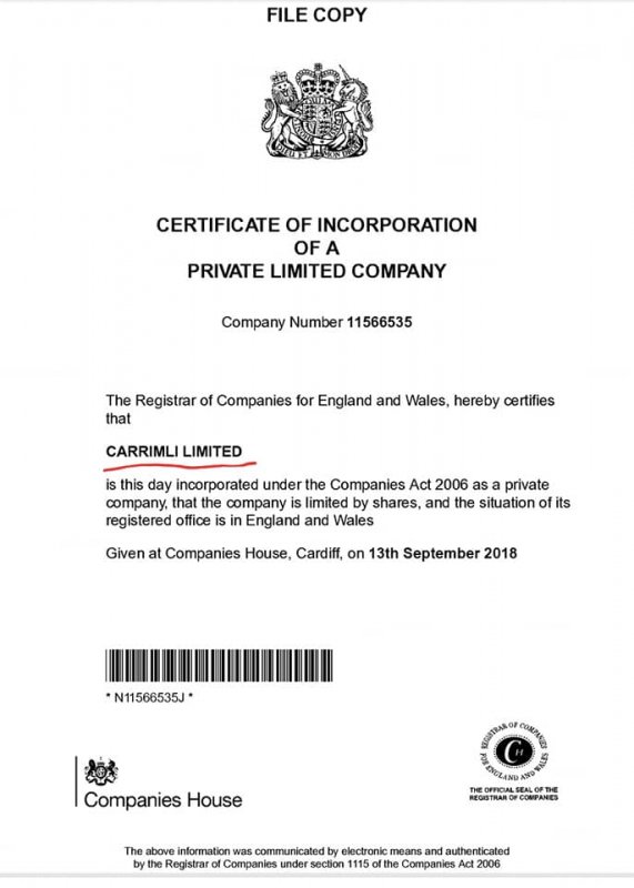 O qeyd edib ki, “KARİMLİ LİMİTED” (CARRIMLI LIMITED) adlı şirkət 2018-ci ilin sentyabrın 13-də 11566535 saylı şəhadətnamə ilə Londonda qeydiyyatdan keçib. “Reyestr məlumatlarına görə şirkət daşınmaz əmlak satışı ilə məşğuldur. Qeydiyyat ünvanı 186 Ability Place, 37 Millharbour, London, United Kingdom, E14 9DF”.