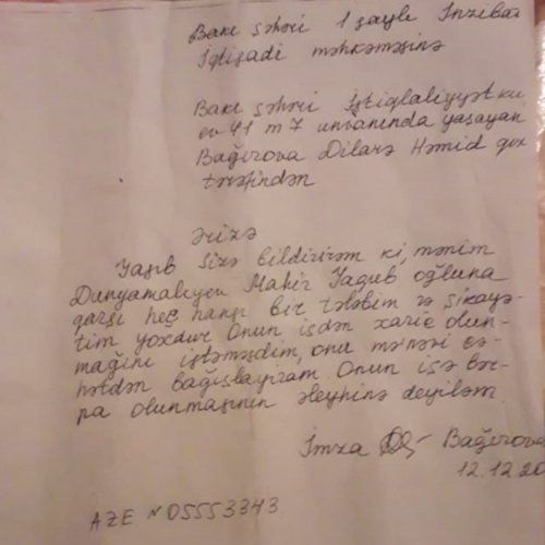"Hadisədən 20 gün sonra məni izahat yazmağa dəvət etdilər. Sürücünün anası hadisədən 11 gün DİN-nə teleqram vuraraq bildirib ki, guya mən onun ailəli qızına protokol yazmamaq müqabilində əxlaqsız təklif etmişəm. Yayda Novxanı çimərliyinin tıxacını açmaqdan su içməyə vaxt var idi ki, qıza da əxlaqsızlıq edəm? Mən xidmətə çıxmışdım, yoxsa manyaklığa? Guya sürücü qızın telefonun almışam, özümə zəng etmişəm. Sonra yeməyə dəvət etmişəm, bezdirməyə başlamışam”. Bu fikirlər bir müddət əvvəl xidmətdə verdiyi nöqsanlara görə vəzifəsində kənarlaşdırılan Abşeron rayon Polis Şöbəsinin Dövlət Yol Polisi inspektoru Mahir Dünyamalıyevə məxsusdur.