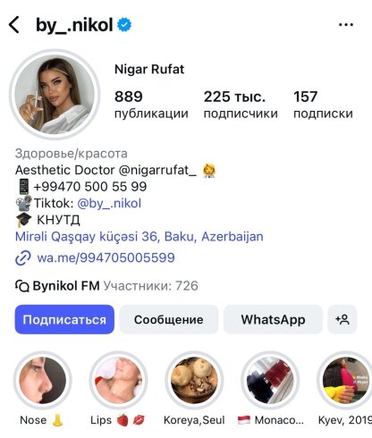 Bu arada, qeyd edək ki, Nigar Rüfət estetik cərrahlar üçün oktyabrın 26-da “The art of Facial Harmony” adlı master-klass keçirəcək. Bir sözlə heç bir tibbi təhsili və sertifikatsiyası olmayan Nigar xanım həkimlərə dərs deyəcək.