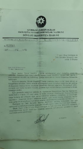 “Ekologiya Nazirliyinin süründürməçi, məsuliyyətsiz, məmurlarının qanunazidd hərəkətlərinin dərhal qarşısının alınması” barədə şikayət məktubu ünvanlamışdır. Bir nüsxəsi də ifadetv.com saytına göndərilən şikayət ictimai və dövlət əhəmiyyəti kəsb edtdiyindən onu oxucularımıza təqdim edirik: