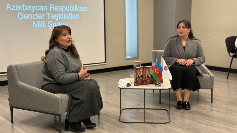 “Ulu Öndərin əziz xatirəsinə həsr olunmuş film nümayişi, Heydər Əliyev və Azərbaycan dili kitabının müzakirəsi” keçirilib. Tədbirdə AMEA-nın Məhəmməd Füzuli adına Əlyazmalar İnstitutunun böyük elmi işçisi, eyni zamanda kitabın müəllifi Sevinc Dadaşova Ümummilli Lider Heydər Əliyevin zəngin irsi, ana dilimizin inkişafına verdiyi töhfələr və onun Azərbaycan dövlətçilik tarixindəki müstəsna rolu barədə fikirlərini gənclərlə bölüşüb. Ardınca Ulu Öndərin həyat və fəaliyyətini əks etdirən film nümayiş olunub. Film nümayişindən sonra gənclərin fəal iştirakı ilə sual-cavab formatında maraqlı müzakirələr aparılıb.