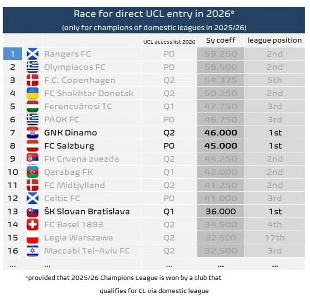 Oxu.Az "Football Meets Data" portalına istinadən xəbər verir ki, bunun üçün klubların reytinq siyahısında "Qarabağ"dan yüksəkdə dayanan komandalar öz liqalarında çempion olmalıdırlar.