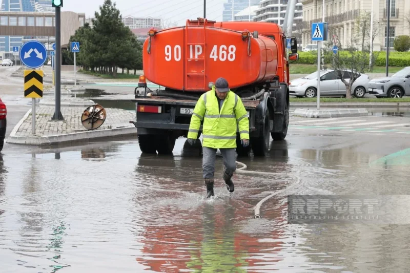 İntensiv yağan yağışın törətdiyi fəsadları aradan qaldırmaq üçün Bakı şəhərinin bütün məsul qurumları koordinasiyalı şəkildə işləyirlər.