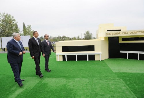Xatırladaq ki, prezident İlham Əliyev 2012-ci ilin sentyabrın 9-da Şəkiyə növbəti rəsmi səfəri zamanı Heydər Əliyev Mərkəzinin, Bayraq Meydanı və Şəki Şəhər İcra Hakimiyyətinin inzibati binasının təməlqoyma mərasimində iştirak etmişdir.