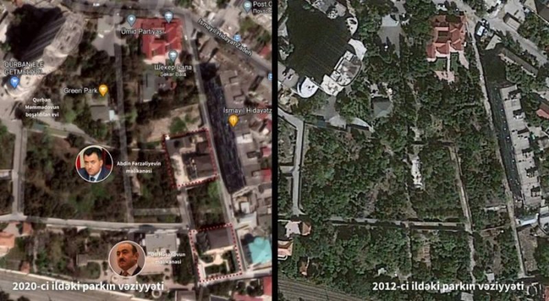 “Nərimanov rayonu, Murtuza Nağıyev və İsmayıl Hidayətzadə küçəsində yerləşən Şəkərbala uşaq bağçası ilə üzbəüz olan park zəbt edilib, xeyli sayda ağaclar kəsilib və orda 2 villa tikilib. Biri Nərimanovun icrabaşı Abdin Fərzəliyevə, digəri isə Prezident Administrasiyasının sabiq şöbə müdiri Əli Həsənova məxsusdur”.
