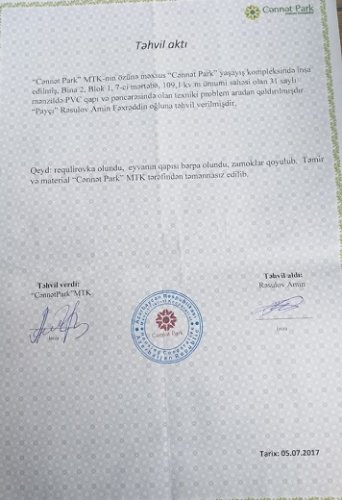Hörmətli cənab Prezident, bildirmək istəyirəm ki, mən Abşeron rayonun Aşağı Güzdək qəsəbəsi yaxınlığında, Bakı-Şamxı yolunun 14-cü km-də “Cənnət Park” yaşyış kompleksində Bina 2, mənzil 31-də nağd ödəniş etməklə 2017-ci ilin iyulun 5-də yaşayış sahəsi 46 kv.m olan 3 otaqlı təmirsiz mənzili təhvil almışdım. İşimlə əlaqədar Rusiya Federasiyasına getdim və pandemiyadan sonra bu ilin əvvəlndə Azərbaycan qayıdıb mənzilimi təmir etmək istədim. Lakin MTK rəhbərliyini təmsil edən binanın komendantı və Ülvi adlı şəxslər məndən tələb etdilər ki, sən 3 ildir ki, kommuanal xidmətlərə görə pul ödəməmisən. Onlar məndən 2021-ci ildədək onlara kommunal xidmət haqqı olaraq 1003 manat və qaz, su sayğaclarına görə isə 750 manat pul ödəməyi tələb etdilər. Və şərt qoydular ki, 1753 manat pulu verməsən məzilinə buraxa bilmərik. Artıq 1 aydır ki, məni pulumu verib aldığım mənzilə buraxmırlar. Başa sala bilmirəm ki, axı mən son 3-4 ili mənzili təhvil alandan sonra bura ayağım dəyməyib. Ona görə də mən istifadə etmədiyim kommunal xidmətə görə qanunvericiliyə görə pul ödəməli deyiləm. 1 aydır ki, mən MTK rəsmilərini başa sala bilmirəm. Dəfələrlə yanımda dostum Soltanov Qubad Rfiq oğlu ilə evimə getmək istəmişəm Və hər dəfə də Qubadın yanında deyiblər ki, xeyri yoxdur sən 1750 manatı ödəməsən mənzilə qalxa bilməzsən. Mənim olmadığım vaxt isə mənzilimin seyf qapısını sındıraraq qanunsuz daxil olmuş və balkona quraşdırdıqları keyfiyyətsiz pəncərəni örtmüşlər.