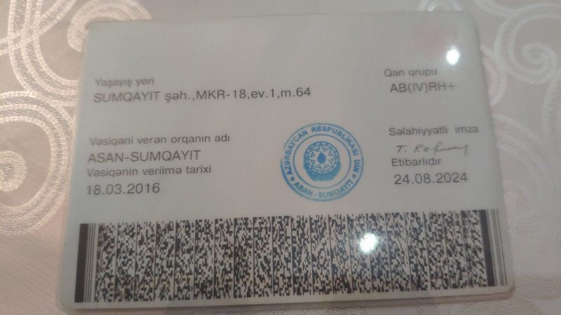 Sumqayıt şəhəri, 18-ci mk-rn, ev 1, mən.64-də yaşayan Ağagülova Gülnarə Qazəhməd qızı tərəfindən