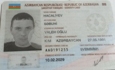 DİN-nin Daxili Qoşunların ...73 saylı hərbi hissəsinin xüsusi vasitələrtətbiqi dəstəsinin I xüsusi vasitələr bölüyünün götürmə qrupda sürücü işləyən, Binəqədi rayonu, Zəngəzur küçəsi, təzə məhəllədə yaşayan Hacalıyev Səbuhi Valeh oğlu tərəfindən