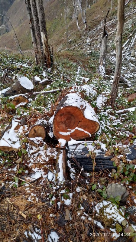 Qəbələ. Milli Park ərazisində kürünmədən sonra kəsilən ağaclar