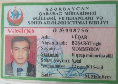 Hörmətlə, Qarabağ qazisi, 2-ci qrup müharibə əlil Vüqar Məmmədov