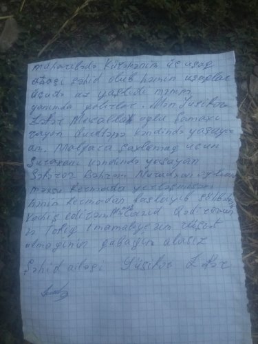 Şamaxı rayonun Qurdtəpə kənd sakini ( şəhid ailəsi) Yusifov Zəfər Maşallah oğlu tərəfindən respublikan;n direktiv orqanlar;na bir nüsxəsi də mətbuat orqanlarına ünvanlanmış şikayət məktubu müharibədən yenicə çıxmış bir ölkənin həm vətəndaşlarına, həm də dövlət orqanlarına utanc gətirəcək bir hadisə hesab etmək olar. Şəhid ailəsinin şikayətin ictimai əhəmiyyətini nəzərə alaraq onu olduğu kimi oxucularımıza təqdim edirik: