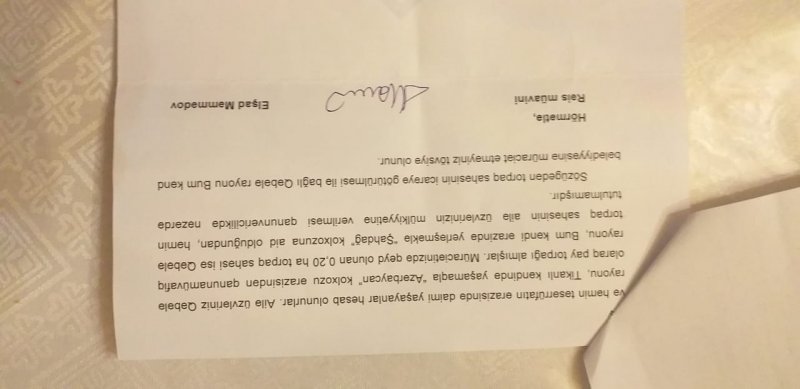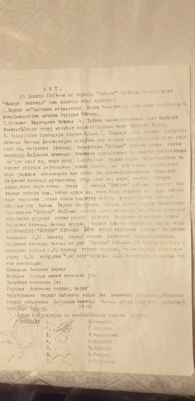 Budur, atam sağlığında dəflərlə yerli DTXK-nin Qəbələ rayon şöbəsinə rəsmi müraciətlər edərək ona verilmiş həmin 0.2 ha torpaq sahəsinin mülkiyyət sənədini almaq istəmişdir. Lakin qurum hər dəfə 16 mart 2007-ci ildə verdiyi rəsmi cavabda qeyd edir ki, “ Yaxın vaxtlarda Sizin tələb etdiyiniz sahənin mülkiyyət hüququna dair şəhadətnaməsi hazırlanaraq Sizə təqdim ediləcəkdir”. Lakin illər keçsə də rəhmətlik atam bu dəstəyə rüşvət vermədiyi üçün onu illər uzunu süründürməçiliyə salmışlar.Nəhayət son müraciətimə bu ilin 16 iyununda Əmlak Məslələri DK-nin Daşınmaz Əmlakın Dövlət Reyestr Xidməti rəisinin müavini Elşad Məmmədovun məntqsiz və əsassız cavabını aldıq. “ Bum kəndi, “Şahdağ” kolxozu, Yerli Aqrar İslahat Komissiyasının tərtib etdiyi 25 dekabr 1997-ci il tarixli torpaq sahəsinin seçilməsinə dair aktı hüquqmüəyyənedici sənəd deyil, həmin torpaq sahəsinin yerini müəyyənləşdirməyə imkan verən texnikisənəd olduğundan , sözügedən aktda göstərilən 0.2 ha torpaq sahəsi üzərində hüquqların dövlət qeydiyyatına alınması mümkün olmamışdır.” Dərhal təbii sual yaranır. Bəs niyə qonşuluqda Yerli Aqrar İslahat Komisiyasının qərarı əsasında paylanılmış digər torpaq sahələrinə DƏK-in Qəbələ 9 saylı Ərazi Reyestr İdarəsi tərəfindən mülkiyyət sənədləri verilmişdir? Bəli, vaxtilə AR Dövlət Torpaq və Xəritəçəkmə Komitəsi tərəfindən bizə ayrılmış 2000 kv.m torpaq sahəsi üçün Torpaq sahəsinin plan və ölçüsü sənədi hazırlanmalı və Dövlət Torpaq Kadastrı kitabında uçota alınmalı idi. Buna görə biz fizikişəxsin heçbir günahı ola bilməz. Bu gün bu işi DTXK-nin əvəzinə DƏK-in Qəbələ 9 saylı Ərazi Reyestr İdarəsi tərəfindən həyata keçirilə bilərdi.Amma bizə formal və əsassız cavab yazmaqla işini bitmiş hesab edir.