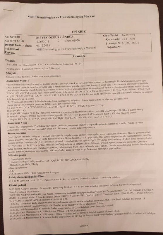 3 yaşlı körpə Əliyev Özgür Gündüz oğlu "Kəskin leykoz" xəstəliyindən əziyyət çəkir. Hazırda müalicəsini davam etdirir. Lakin təcili əməliyyat olunmalıdır. Neçə vaxtdır ki, müalicənin aparılması üçün Özgürün ailəsi yaşadıqları mənzili, ev və şəxsi \şyalarının hamısınısatıb müalicəyə veriblər. Hazırda ailəyataqxanada məskunlaşmışdır. Qohum-əqrəba da əlindən gələn maddi köməkliyi etsə də, Özgürün həyatda qalması üçün kifayət etmir. Onun təcili əməliyyat olunması üçün maddi yardıma ehtiyacı vardır. Gənc ailənin kədərini və maddi imkansızlığını nəzərə alaraq ona maddi yardım etmək istəyən hər bir azərbaycanlıya əvvəlcədən öz dərin təşəkkürümüzü bildirirk.