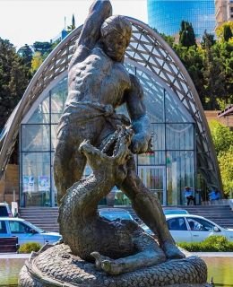 Hələ 1959-cu ildə – Leninqrad Boyakarlıq, Heykəltəraşlıq və Memarlıq İnstitutunda oxuyarkən, kurs işi olaraq gildən hündürlüyü cəmi 30 santimetr olan “Bəhram Gur əjdahanı öldürür” kompozisiyasını hazırlamışdı. 1960-cı ildə isə həmin vaxt Moskva Ali Rəssamlıq-Sənaye Məktəbində təhsil alan Aslan Rüstəmov və Tbilisi Rəssamlıq Akademiyasını yenicə bitirmiş Qorxmaz Sücaəddinovla birlikdə qərara gəlirlər ki bu kompozisiyanı yenidən işləyib Bakının fontan-heykəllərinin hazırlanması üzrə müsabiqəyə təqdim etsinlər. “Bəhram Gur əjdahanı öldürür” fontan-kompozisiyası üç gənc heykəltəraşın birgə əsəri kimi müsabiqəyə təqdim olunur. Bakı Şəhər Xalq Deputatları Soveti İcraiyyə Komitəsinin sədri Əliş Ləmbəranski gənc heykəltəraşların hazırladıqları eskizi çox bəyənir. Heykəl bürüncdən tökülür və Bakının ən görməli yerlərindən birində ucaldılır.