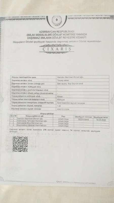 "Məlumat üçün bildirim ki, mənə və 4 nəfərdən ibarət ailə üzvlərimə Şəki rayonun Baş Göynük kəndinə məxsus 1.88 ha pay torpaq verilmişdir. Hər ili mən burada taxıl əkinilə məşğul oluram. lakin çox təəssüflər olsun ki, 2020-ci il üçün bizə əkin subsidiya verilmədi. Belə əsaslandırdılar ki, hüquqmüəyyənedici sənədimiz yox imiş. lakin biz dövlət Torpaq Aktını təhvil verib onun əsasında torpağın kadastr sənədini almışdıq.(Respublika üzr dövlət Akt ə çıxarış əsasıda susidiyalar verilmişdir) Budur, nəhayət çıxarışları almışıq. Lakin təəssüflər olsun ki, KTN-nin yerli idarələrində ixtisaslı və savadı yetərli olmayan kadrlar olduğundan bizim kəndimizdə fermerlərin bir hissəsinə subsiydiya verilmiş, bizim kimi sadə insanlara isə nədənsə verilməsi «yaddan» çıxmışdır. Beləliklə, 2020-ci il üçün dövlət büdcəsindən bu təyinat üzrə ayrılan külli miqdarda pulların taleyi məlum olmadı. İndi payız əkini üçün də bəyan etmişik. sənədi də almışıq. Amma ki fayda. İndi də 2021-ci il üçün yenə subsidiyanın hesablanıb kartımıza köçürülməsində bürokratiya davam edir. Cənab baş nazir Əli Əsədov, Sizdən xahiş edirəm ki, kənd təsərrüfatı sahəsindən elə bir elementar anlayışı olmayan cənab nazir İnam Kərimovu başa salın ki, indiki həssas məqamda kənd insanlarının heysiyyatı ilə məsuliyyətsiz kadrları oynamaqdan əl götürsünlər. Biz bu adamı özünün də dediyi kimi, «27 il dövlətə sədaqətlə «xidmət edən» və nəticədə 15 mlrd dollar - varidata sahib olan və 27 il Korrupsiaia qarşı Mübarizə Komissiyasının sədri olmuş Ramiz Mehdiyevin katibi işlədiyi dövrdən tanıyırıq. Hələ o vaxtı baş korrupsionerin katibi olmuş bu adam korrupsiyaya qarşı nə mübarizə apardı ki, indi KT Nazirliyində nə iş görə?!. Hesab edirəm ki, bazar qanunlarını yığışdırmağın vaxtıdır. Cənab baş nazir Əli Əsədov, xahiş edirəm 2021-ci il üçün nəzərdə tutulmuş subsidiyanın şəxsi fermer kartıma yönləndilməsi üçün Kənd Təsərrüfatı Nazirliyinə şəxsən göstəriş verəsiniz. ki, işlərimiz çox ləngiməsin. Əvvəlcədən təşəkkürlər.