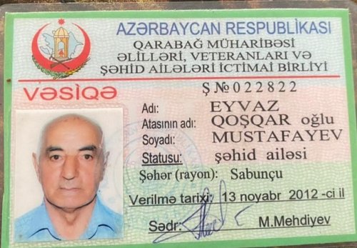 Qeyd edim ki, 1994 ci ilde Fizuli rayonun Alxanlı kəndi urunda 12-si yanvarda torpağin müdafiəsi uğrunda Oğlum Mustafayev Akif Eyvaz oğlu şəhid olub. Bakı şəhərində oğumun adını əbədiləşdirmək üçun küçə adı verilib və xatirə lövhəsi vurulub.