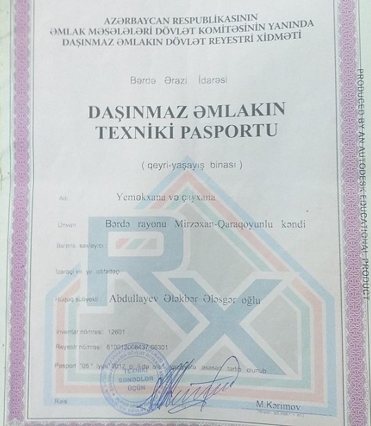 2014-2015-ci illərdə Bərdə rayon İcra Hakimiyyətinin başçısı cənab Vidadi İsayev bizə bildirdi ki, bəs kəndin girəcəyinə “Ala qapı” qoyulmalıdır. Bu bir dövlət tədbiridir. Və ona görə də sizin çayxana və yeməkxana binası sökülməli, yerində bu “Ala qapı”nın tikintisi aparılmalıdır. Naəlac qalıb razılıq verdik. Obyektlərimizin və torpağımıza heç bir kompensasiya verilmədən söküldü. Lakin, “Ala qapı” inşa edilib başa çatandan sonra gördük ki, bu obyektin bizim çayxana və yeməkxana ərazimizə düşməyib. Yəni dəxli olmayıb. Biz o zaman 2015-ci ildə icra başçısı Vidadi müəllimlə görüşüb xahiş etdik ki, tikilən “Ala qapı”nın bizim şəxi mülkiyyətimiz olan yerə düşmədiyini nəzərə alaraq icazə verilsin obyektlərimizi yenidən əvvəlki kimi bərpa edib istifadə edək. Cənab başçı cavab verdi ki, bir az gözləyin ki, Prezident kəndə açılış mərasiminə gəlsin və getsin, o zaman siz də obyektlərinizi yenidən tikər, bərpa edərsiniz. Razılaşdıq. Amma bizim yol kənarı olan hissəyə də 16-17 ədəd şam ağacları da əkmişdilər. Lakin dövlətimizin başçısının rəsmi açılışa gəlib getməsindən sonra dəflərlə cənab icra başçısının qəbulunda olub bizə şəxsi mülklərimizi bərpa etməyə ( öz hesabımıza) və sahibkarlıq fəaliyyətimizi davam etdirməyə icazə istədik. Başçı əvvəllər hər dəfə bizə bəhanə ilə işimizə icazə vermədi. Sonda isə qəti olaraq eiraz etdi ki, tikililəri bərpa etmək olmaz! Digər tərəfdən də ETSN-nin yerli meşə idarəsindən də dedilər ki, sizin torpaq sahənizdə əkilən ağaclara toxunmaq olmaz. Budur, nəticədə biz 7 ildən çoxdur ki, əvvəlki kimi sahibkarlığımızla məşğul ola bilmirik. Baxmayaraq ki, torpaq da mülklər də rəsmi sənədlərlə mülkiyyətimizdə olub. Lakin bizim obyektlə üzbə üz olan və yolun sol tərəfindəki mühafizə zolağında iridiametrli yeraltı çəkilmiş magistral qaz xəttinin düz üstündə iki mərtəbəli böyük bir kommersiya obyekti sənədsiz tikilərək istifadəyə verilmişdir. Digər tərəfdən isə çayxana və yeməkxana obyektimizə təzədən texniki pasport almaq üçün ASAN xidmətdə 1500 manat rüsum haqqı ödədikdən sonra indi də DƏDRX-nin 7 saylı Ərazi İdarəsi bizə yenidən torpağın çıxarış üzrə obyektlərə texniki pasport vermir. Şərt qoyur ki, gərək siz əvvəlcə obyektlərinizi olduğu kimi tikin, sonra sənəd verək. Doğrudur, obyektlr dostum Abdullayev Ələsgər Ələkbər oğlunun adına sənədləşdirilsə də, sonradan aramızda alqı-satqı müqaviləsi bağlamışıq. Ki, Obyektlər yenidən bərpa olunacağı təqdirdə birbaşa mənim adıma rəsmiləşsin.