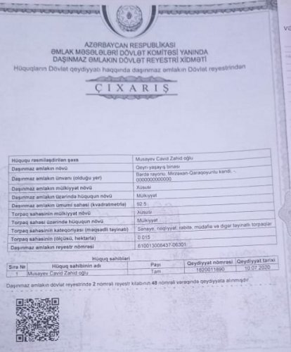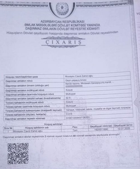 “Cənab Pezident, yazıb Sizə bildrmək istəyiəm ki, mən Cavid Musayev uzun müddətdir ki, Bərdə rayonun Mirzəxan-Qaraqoyunlu kəndində yaşamış və sahibkarlıqla məşğul olmuşam.Yəni, kəndin girəcəyində 1.5 sot şəxsi mülkiyyətim olan torpaq sahəmdə çayxana, yeməkxana və bir dükanım vardı. Və onları işlədirdim.