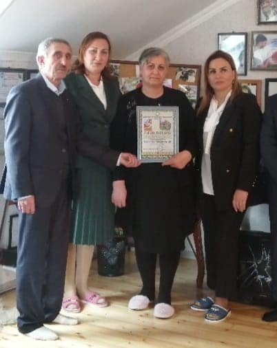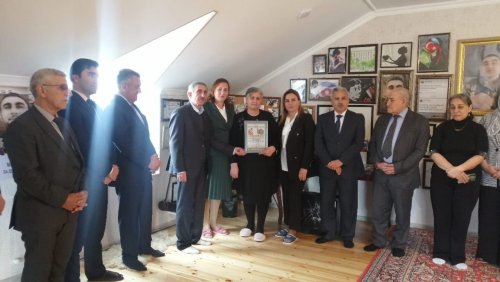 Şəhidlərin ölməz hünərindən danışan Birlik sədri Yasəmən Qəyyumlu qələbənin rəmzi olan "Zəfər diplomu" nu şəhidin valideynlərinə təqdim edib.